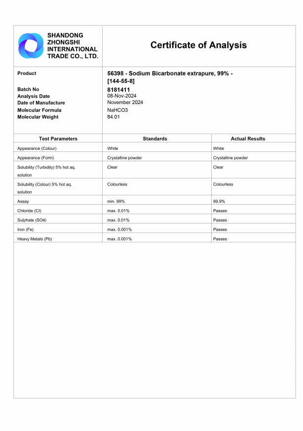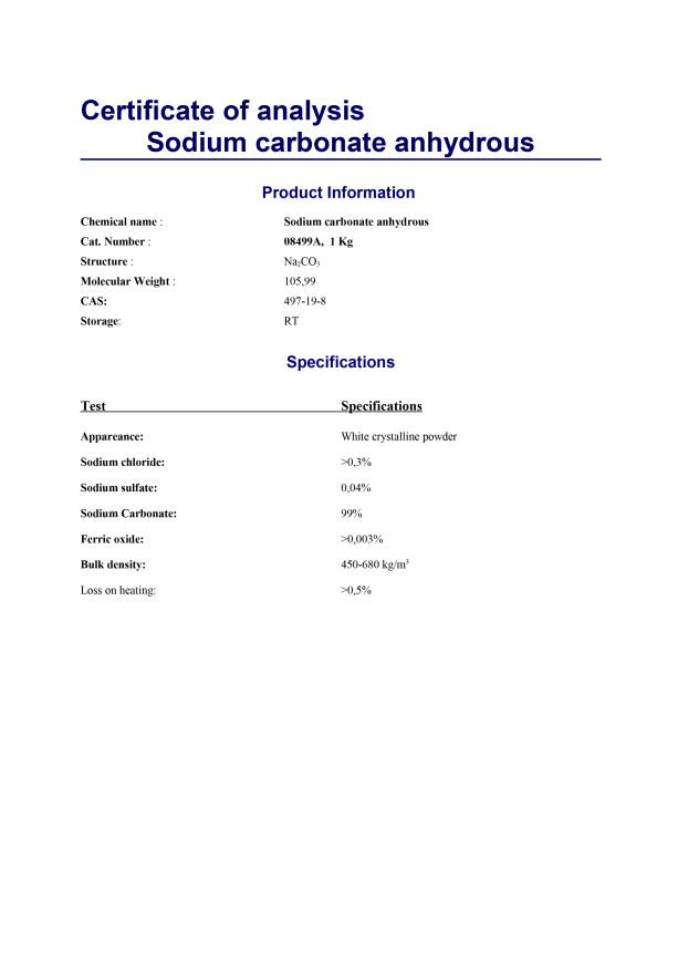 Chemical properties: The aqueous solution hydrolyzes to an alkaline state and has a certain degree of corrosiveness. It can neutralize with acids, generate corresponding salts, and release carbon dioxide. It can decompose at high temperatures, generating sodium oxide and carbon dioxide. It will deliquescence in humid air, slowly absorb carbon dioxide and water, and some will become sodium bicarbonate. Therefore, packaging should be strict, otherwise it will absorb water and clump.